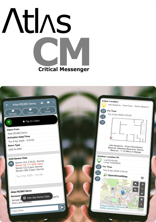 Aspect Link ensures that critical alarms reach responders instantly across a wide range of devices including PCs, mobile phones, laptops, and tablets, via multiple channels. Alarms can be delivered through a standard web browser, the dedicated Atlas CM (Critical Messenger) app, over any data connection. Additionally, alerts can be sent via SMS messaging, ensuring coverage even in low-connectivity environments. Responders receiving SMS alerts can access all relevant incident details, including location maps and indoor layout drawings, through embedded links. Just like users on a browser or the Atlas CM app, SMS recipients can also interact with the alert, take appropriate actions, and update the system in real time, keeping all responders and lone workers informed and synchronised throughout the response process.